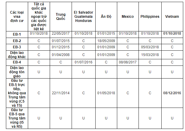 “U”: không có sẵn. Điều này có nghĩa là không có sẵn lượng visa được cấp.