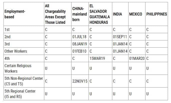 “C”: đang thụ lý hồ sơ hiện tại, có nghĩa là số lượng visa có sẵn cho tất cả ứng viên đủ tiêu chuẩn.