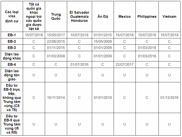 “U”: không có sẵn. Điều này có nghĩa là không có sẵn lượng visa được cấp.
