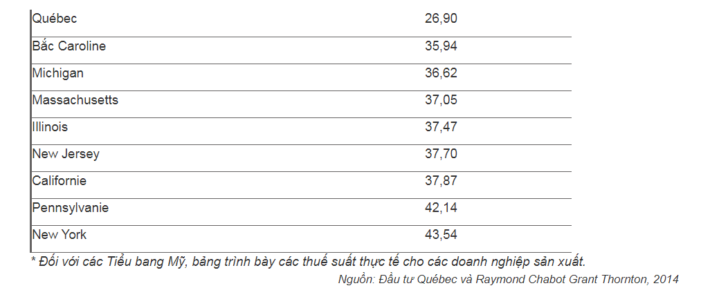 Ở Québec, chi phí hoạt động của một doanh nghiệp trung bình thấp hơn 9,7 % so với Hoa Kỳ.