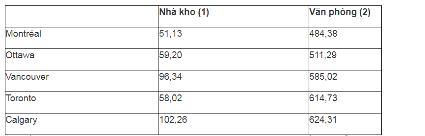 (2) Chi phí thô để thuê một tòa nhà hạng A ở trung tâm thành phố, bao gồm thuế, bảo hiểm, bảo dưỡng, dịch vụ công cộng và gác cổng.