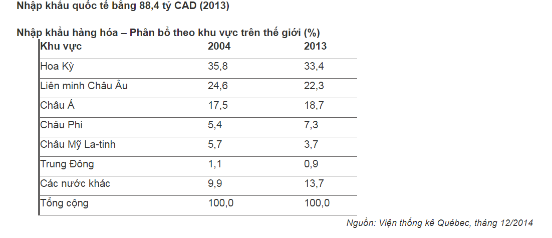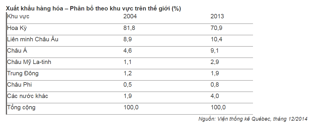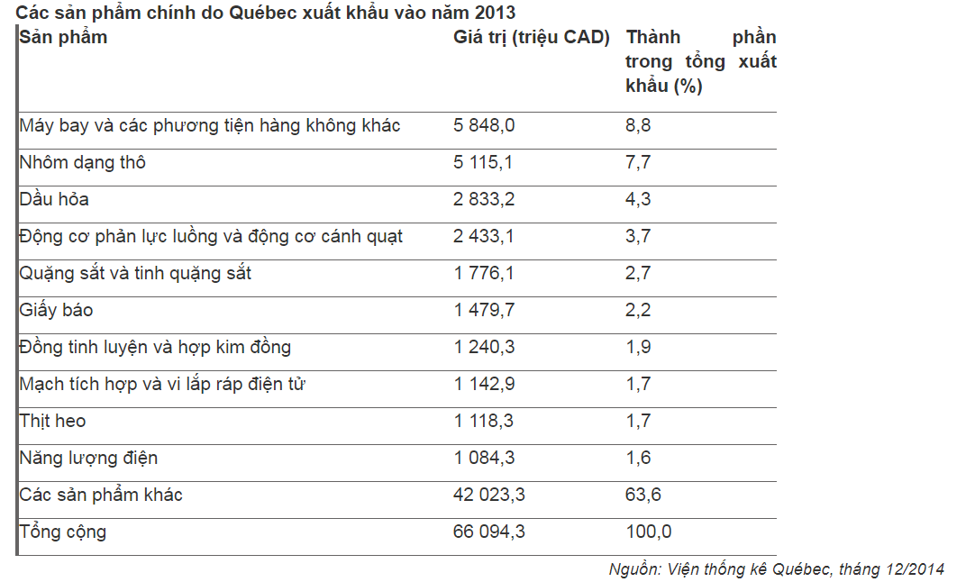 Xuất khẩu quốc tế bằng 66,1 tỷ CAD (2013).