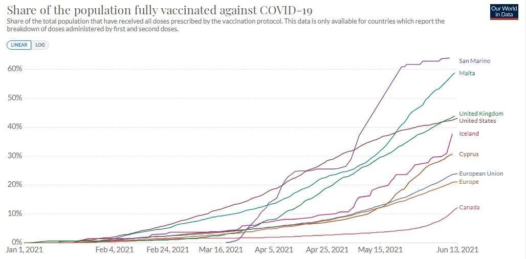 Tính đến ngày 11/06/2021, Malta đã tiêm phòng đầy đủ cho 58% dân số, cao hơn cả Mỹ, Anh, Canada và châu Âu. Cộng hòa Síp (Cyprus) cũng đã hoàn tất cho 30,6% dân số, cao hơn nhiều so với mức trung bình 23,6% của EU. Xét về tiềm năng, Malta dẫn đầu liên minh và Síp đứng thứ 3 về số liều vắc xin đã được phân bổ, mọi cư dân, kể cả người tỵ nạn và visa tự do đều được tham gia. Các hoạt động kinh doanh, thể thao, giải trí,… được nối lại. Chứng nhận vắc xin được ban hành và từ tháng 7 tới, cả hai đảo quốc sẽ gia nhập chương trình “hộ chiếu vắc xin” của liên minh châu Âu, mở lại khả năng tự do di chuyển và hoạt động trên toàn cầu.