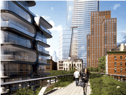 Hudson Yards nằm ở khu vực phía Tây Manhattan , dự án tái sử dụng các trạm xe điện cũ tại đây và biến chúng thành một khu phức hợp bao gồm 16 toà nhà chọc trời cùng với hơn 5.000 căn nhà dành cho người dân New York. Điều này đã làm cho thành phố Hudson Yards trở thành nơi rất đáng để sinh sống tại New York hiện nay.