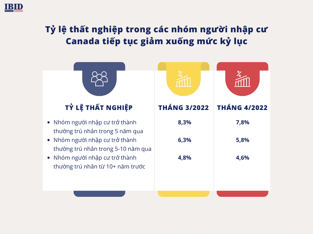 Tỷ lệ thất nghiệp ở những người nhập cư đã giảm xuống 5,5% vào tháng 4, so với 5,8% vào tháng 3, đồng thời ghi nhận mức giảm ở tất cả các nhóm.